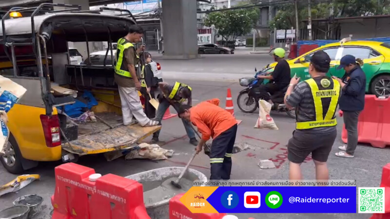 ระทึก ถนนแจ้งวัฒนะทรุดตัวลึก 1.50 เมตร ใต้สะพานคลองประปา จนท.เร่งปิด 1 ช่องทางจราจร