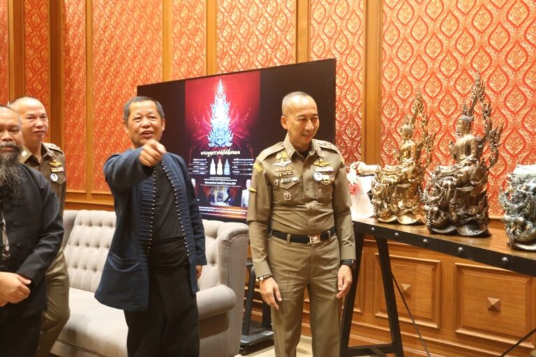 วันที่ 21 ต.ค.66 เวลา 14.00 น. ณ อาคารประชุมสัมมนาและฝึกอบรม ตร. (เมืองทองธานี) พล.ต.อ.ต่อศักดิ์ สุขวิมล ผบ.ตร.พร้อม อาจารย์เฉลิมชัย โฆษิตพิพัฒน์ ศิลปินแห่งชาติ และอาจารย์ทรงเดช ทิพย์ทอง ศิลปินเชียงราย ร่วมแถลงข่าวจัดสร้าง “พระพุทธราชสวัสดิ์มงคล” เพื่อมอบประดิษฐานเป็นพระพุทธรูปประจำกองบังคับการปฏิบัติการพิเศษ กองบัญชาการตำรวจสอบสวนกลาง พร้อมจัดหารายได้ให้สวัสดิการตำรวจ จัดซื้อเครื่องมือแพทย์ และทุนการศึกษา