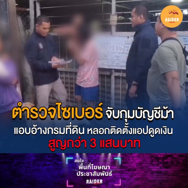 ตำรวจไซเบอร์จับกุมบัญชีม้าแอบอ้างกรมที่ดิน หลอกติดตั้งแอปดูดเงิน สูญกว่า 3 แสนบาท