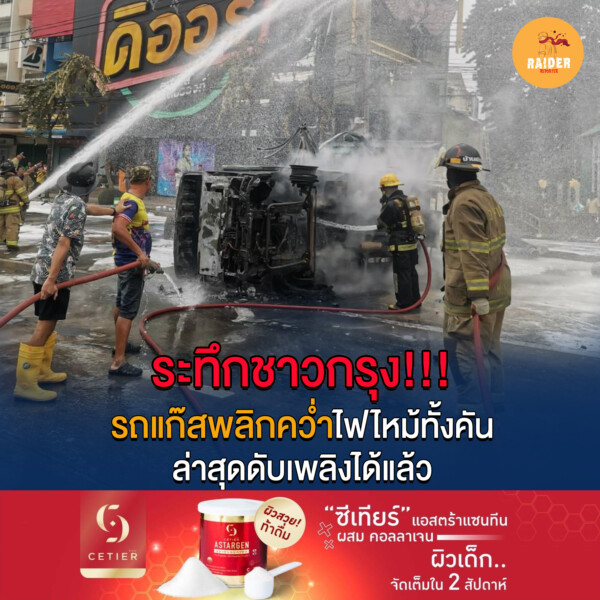 ระทึกชาวกรุง!!! รถแก๊สพลิกคว่ำไฟไหม้ทั้งคัน ล่าสุดดับเพลิงได้แล้ว