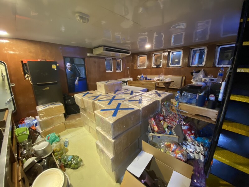 มีรายงานว่าระหว่างการจับกุมผู้ต้องหาได้พยายามหลบหนีด้วยการกระโดดน้ำหลบหนี แต่เจ้าหน้าที่ชุดปฏิบัติการพิเศษมัจฉานุ ได้กระโดดน้ำลงตามและสามารถจับกุมตัวผู้ต้องหาไว้ได้ทั้งหมดจำนวน จำนวน 13 คน จากการตรวจค้นภายในเรือพบของกลางยาไอซ์ซุกซ่อนอยู่ภายในใต้ท้องเรือ จำนวน 90 กล่อง น้ำหนักรวมประมาณ 2,000 กิโลกรัม ทั้งหมดถูกอำพรางอัดแน่นอยู่ในถุงผลไม้อบแห้ง จึงได้รายงานผู้บังคับบัญชารับทราบ โดยหลังการจับกุม พล.ต.ท.สำราญ นวลมา ผู้ช่วย ผบ.ตร. และ พล.ต.ต.สมบูรณ์ เทียนขาว รอง ผบช.ปส. เดินทางมาตรวจสอบที่เกิดเหตุ และตรวจยึดของกลางพร้อมผู้ต้องหาส่ง บช.ปส. เพื่อดำเนินคดีตามกฎหมายต่อไป…