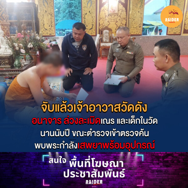 จับแล้วเจ้าอาวาสวัดดังอนาจาร ล่วงละเมิด เณร และเด็กในวัด นานนับปี ขณะตำรวจเข้าตรวจค้นพบพระกำลังเสพยาพร้อมอุปกรณ์
