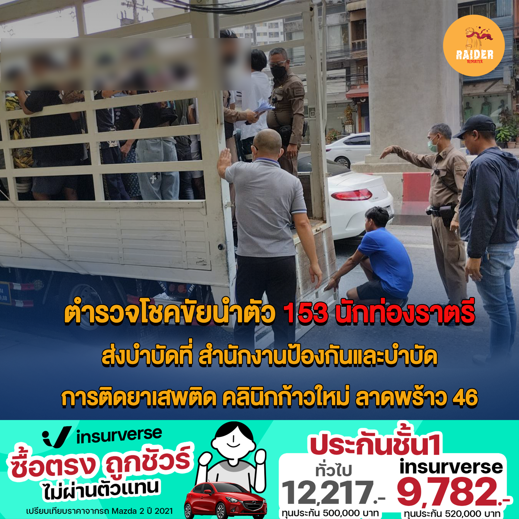 ตำรวจโชคขัยนำตัว 153 นักท่องราตรี ส่งบำบัดที่ สำนักงานป้องกันและบำบัดการติดยาเสพติด คลินิกก้าวใหม่ ลาดพร้าว 46