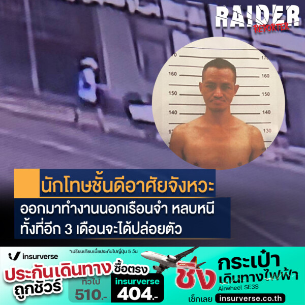 นนทบุรี นักโทษชั้นดีอาศัยจังหวะออกมาทำงานนอกเรือนจำ หลบหนีทั้งที่อีก 3 เดือนจะได้ปล่อยตัว