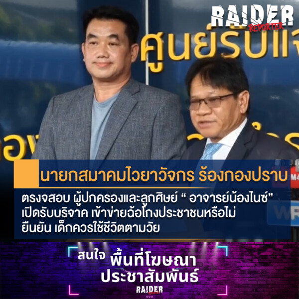 นายกสมาคมไวยาวัจกร ร้องกองปราบ ตรงจสอบ ผู้ปกครองและลูกศิษย์ “ อาจารย์น้องไนซ์” เปิดรับบริจาค เข้าข่ายฉ้อโกงประชาชนหรือไม่ ยืนยัน เด็กควรใช้ชีวิตตามวัย