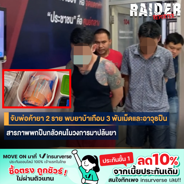 จับพ่อค้ายา 2 ราย พบยาบ้าเกือบ 3 พันเม็ดและอาวุธปืน สารภาพพกปืนกลัวคนในวงการมาปล้นยา