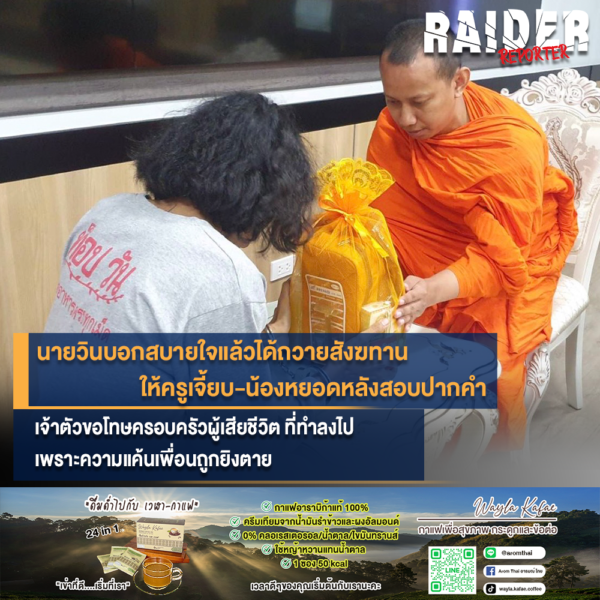 นายวินบอกสบายใจแล้วได้ถวายสังฆทานให้ครูเจี้ยบ-น้องหยอดหลังสอบปากคำ เจ้าตัวขอโทษครอบครัวผู้เสียชีวิต ที่ทำลงไปเพราะความแค้นเพื่อนถุูกยิงตาย