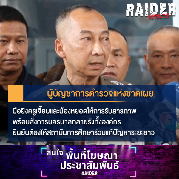 ผู้บัญชาการตำรวจแห่งชาติเผยมือยิงครูเจี๊ยบและน้องหยอดให้การรับสารภาพ พร้อมสั่งการนครบาลทลายรังทั้งองค์กร ยืนยันต้องให้สถาบันการศึกษาร่วมแก้ปัญหาระยะยาว