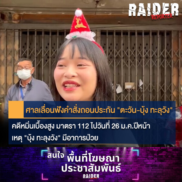 เช้าวันนี้ที่ศาลอาญากรุงเทพใต้ ได้นัดฟังคำสั่งเพิกถอนการปล่อยชั่วคราว น.ส.เนติพร เสน่ห์สังคม หรือ “บุ้ง ทะลุวัง” และ น.ส.ทานตะวัน ตัวตุลานนท์ หรือ “ตะวัน” แกนนำกลุ่มทะลุวัง จำเลยในคดีมาตรา 112 จากกรณีจำเลยได้ทำโพลล์สำรวจความเห็นเรื่องขบวนเสด็จเมื่อปี 2565 ซึ่งก่อนหน้านี้จำเลยทั้งสองได้รับการปล่อยชั่วคราว แต่ได้กระทำผิดเงื่อนไขการปล่อยชั่วคราวของศาล จากการชุมนุมขับไล่นายเนาวรัตน์ พงษ์ไพบูลย์ สมาชิกวุฒิสภา บริเวณด้านหน้ากระทรวงวัฒนธรรม เมื่อวันที่ 6 สิงหาคม ทำให้ทางพนักงานสอบสวน สน.ปทุมวัน ยื่นคำร้องขอให้ศาลมีคำสั่งเพิกถอนการให้ปล่อยตัวชั่วคราวจำเลยทั้งสอง