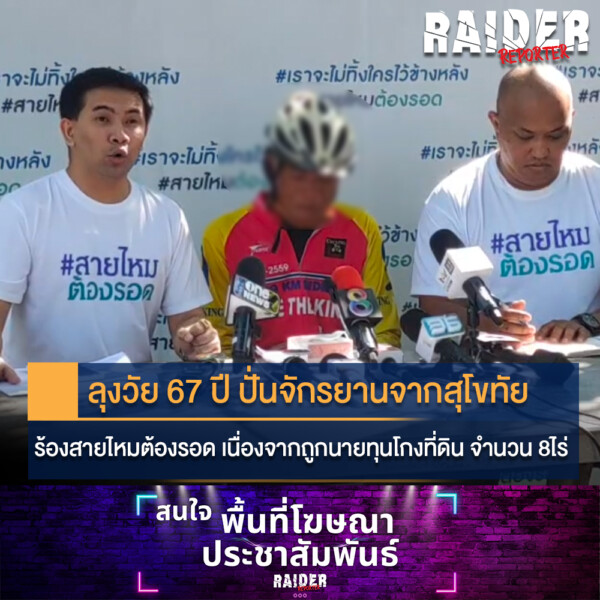 ลุงวัย 67 ปี ปั่นจักรยานจากสุโขทัย ร้องสายไหมต้องรอด เนื่องจากถูกนายทุนโกงที่ดิน จำนวน 8ไร่