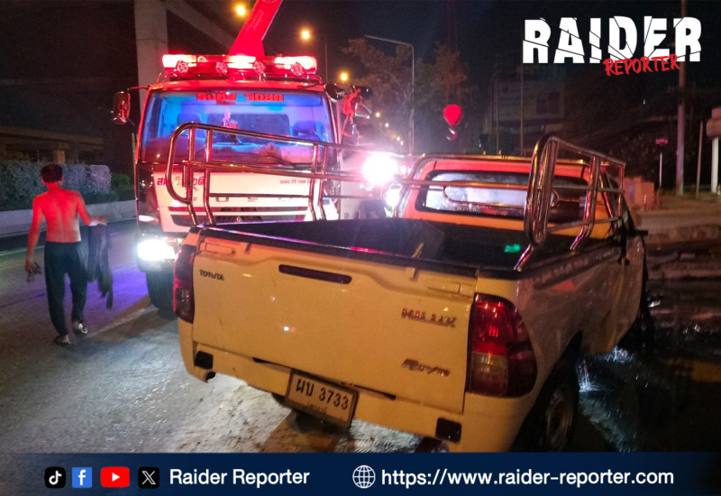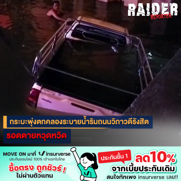 กระบะพุ่งตกคลองระบายน้ำริมถนนวิภาวดีรังสิตรอดตายหวุดหวิด