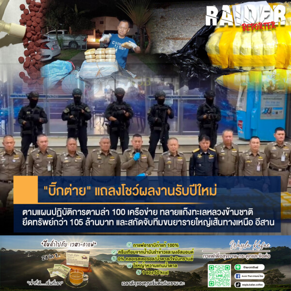 “บิ๊กต่าย” แถลงโชว์ผลงานรับปีใหม่ ตามแผนปฏิบัติการตามล่า 100 เครือข่าย ทลายแก๊งทะเลหลวงข้ามชาติ ยึดทรัพย์กว่า 105 ล้านบาทและสกัดจับทีมขนยารายใหญ่เส้นทางเหนือ อิสาน
