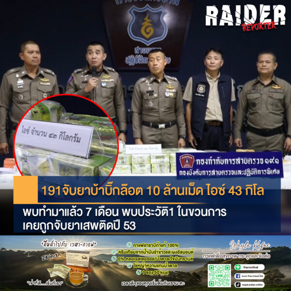 191 จับยาบ้าบิ๊กล๊อต 10 ล้านเม็ด ไอซ์ 43 กิโล พบทำมาแล้ว 7 เดือน พบประวัติ1 ในขวนการเคยถูกจับยาเสพติดปี 53