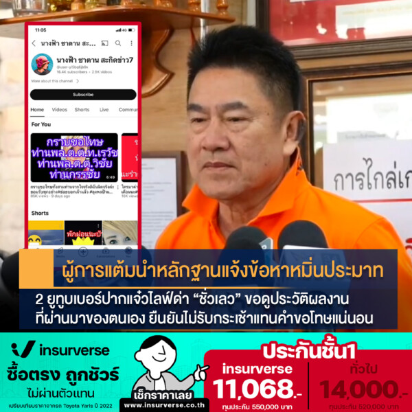 ผู้การแต้มนำหลักฐานแจ้งข้อหาหมิ่นประมาท 2 ยูทูบเบอร์ปากแจ๋วไลฟ์ด่า “ชั่วเลว” ขอดูประวัติผลงานที่ผ่านมาของตนเอง ยืนยันไม่รับกระเช้าแทนคำขอโทษแน่นอน