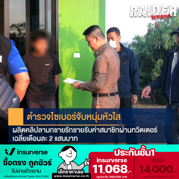 ตำรวจไซเบอร์จับหนุ่มหัวใส ผลิตคลิปลามกชายรักชายรับค่าสมาชิกผ่านทวิตเตอร์ เฉลี่ยเดือนละ 2 แสนบาท