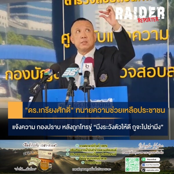 “ดร.เกรียงศักดิ์” ทนายความช่วยเหลือประชาชน แจ้งความกองปราบ หลังถูกโทรขู่ “มึงระวังตัวให้ดี กูจะไปฆ่ามึง”