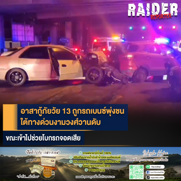 อาสากู้ภัยวัย 13 ถูกรถเบนซ์พุ่งชน ใต้ทางด่วนงามวงศ์วานดับ ขณะเข้าไปช่วยโบกรถจอดเสีย