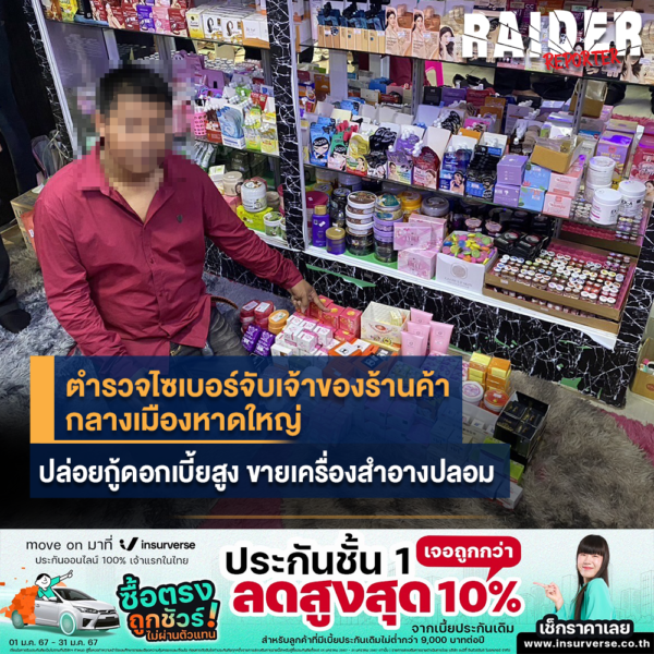 ตำรวจไซเบอร์จับเจ้าของร้านค้ากลางเมืองหาดใหญ่ ปล่อยกู้ดอกเบี้ยสูง ขายเครื่องสำอางปลอม