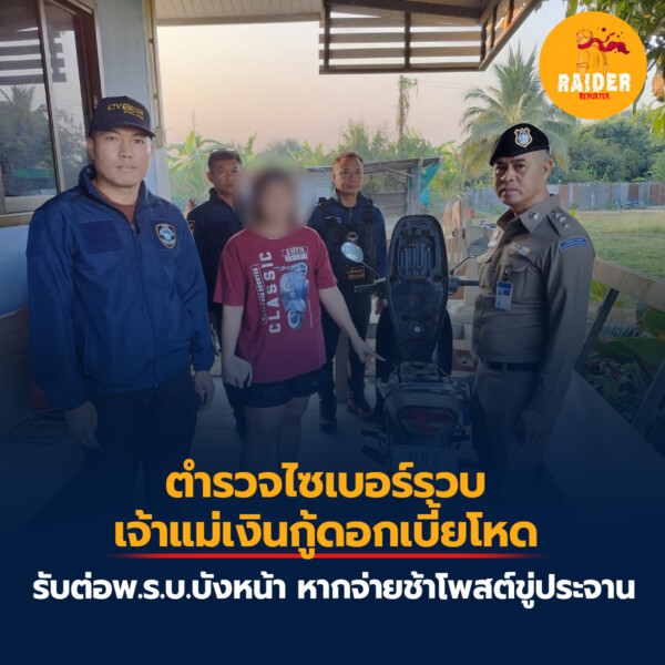ตำรวจไซเบอร์รวบเจ้าแม่เงินกู้ดอกเบี้ยโหดรับต่อ พ.ร.บ.บังหน้า หากจ่ายช้า โพสต์ขู่ประจาน