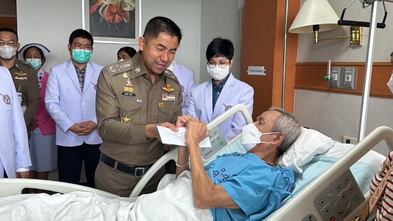 บิ๊กโจ๊กตรวจเยี่ยมบำรุงขวัญ เจ้าหน้าที่ตำรวจ ที่ได้รับบาดเจ็บ จากการปฎิบัติหน้าที่ 4 นายที่โรงพยาบาลตำรวจพร้อมมอบเงินช่วยเหลือแก่ครอบครัว
