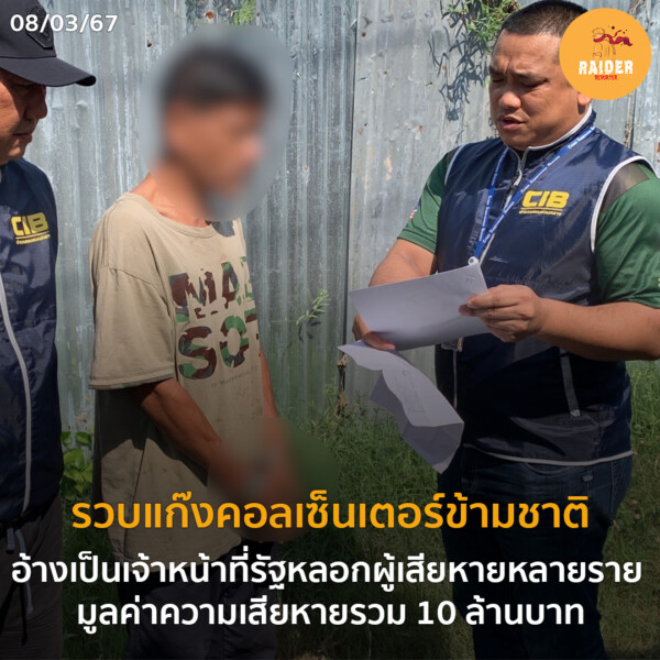 รวบแก๊งคอลเซ็นเตอร์ข้ามชาติ อ้างเป็นเจ้าหน้าที่รัฐ หลอกผู้เสียหายหลายราย มูลค่าความเสียหายรวม 10 ล้านบาท