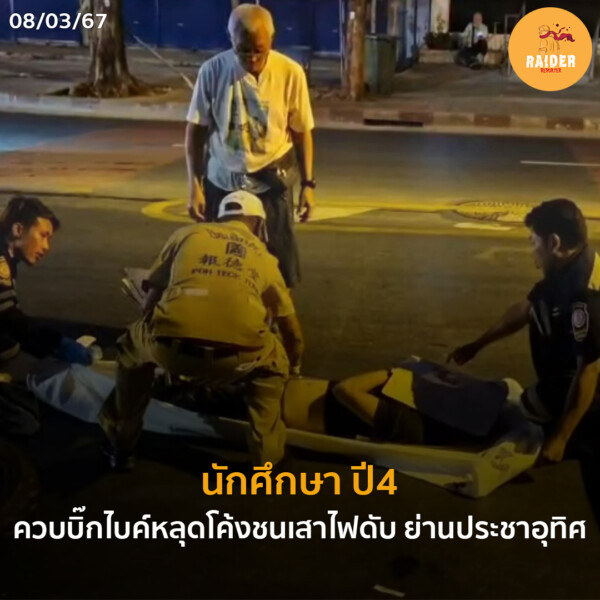 นักศึกษา ปี4 ควบบิ๊กไบค์หลุดโค้งชนเสาไฟดับ ย่านประชาอุทิศ