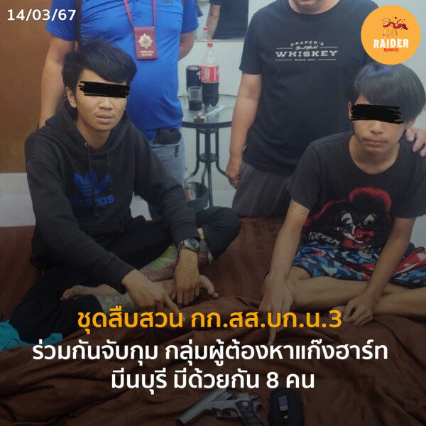 ชุดสืบสวน กก.สส.บก.น.3 ร่วมกันจับกุม กลุ่มผู้ต้องหาแก๊งฮาร์ท มีนบุรี มีด้วยกัน 8 คน