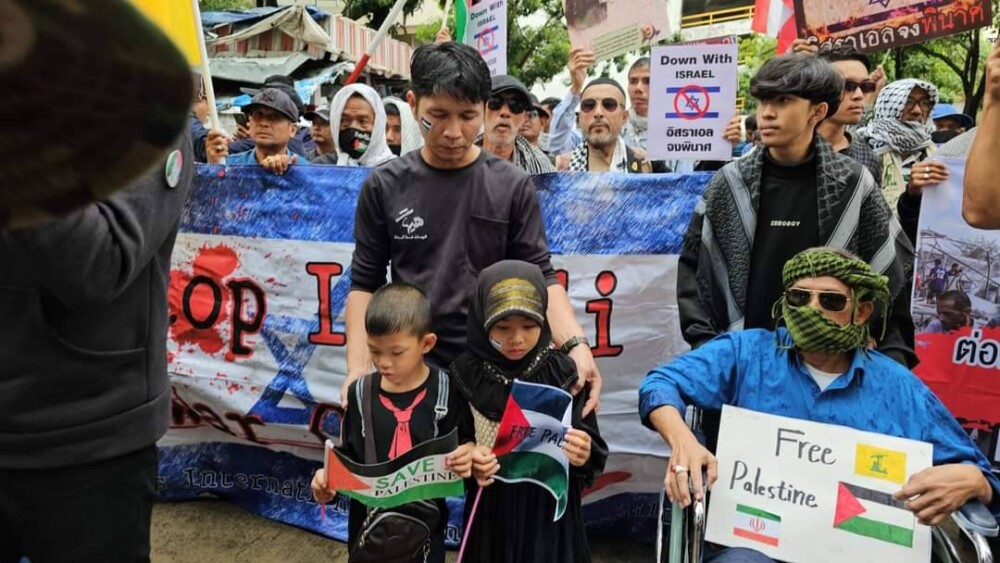 อิสราเอลได้รับอาวุธจากพันธมิตรเริ่มต้นฆ่าล้างเผ่าพันธุ์ตั้งแต่ 75 ปีที่แล้ว โดยอเมริกาให้การสนับสนุนช่วยเหลือชาวยิว เราอยู่ในประเทศไทยไม่สามารถจับอาวุธได้ แต่เราทำอะไรได้เราก็จะทำ เราเป็นคนไทยจะไม่ทำให้ประเทศชาติเสียหาย อย่าปิดกั้นกับการกดขี่ที่รุนแรงดังกล่าวของอิสราเอล