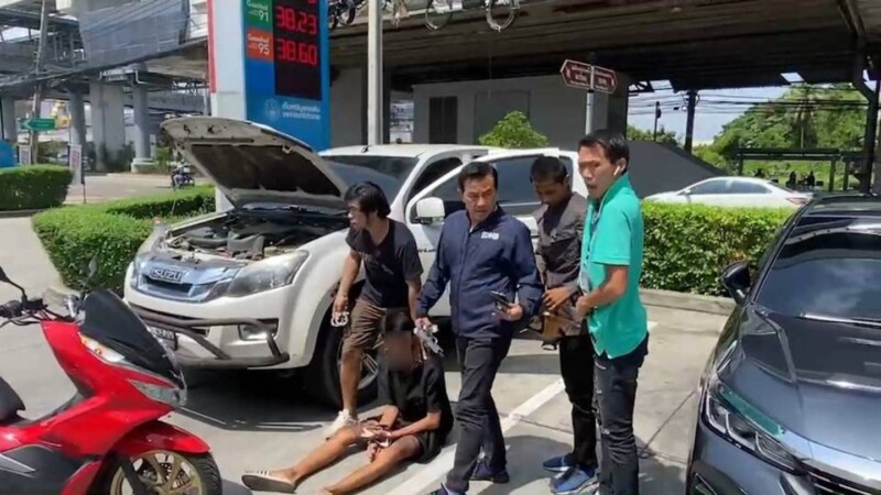 จับกุมที่บริเวณภายในปั๊มน้ำมัน ถนนศรีนครินทร์ แขวงหนองบอน เขตประเวศ กรุงเทพมหานคร