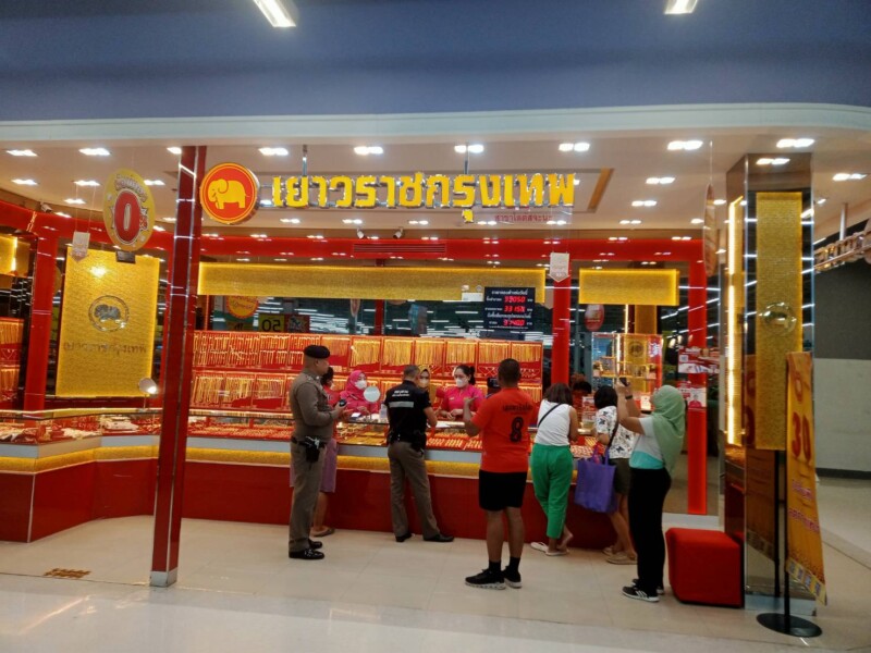 เมื่อวันที่ 8 พ.ย.66 ผู้สื่อข่าวรายงานว่า เกิดเหตุคนร้ายชิงทอง ภายในร้านห้างทองเยาวราชกรุงเทพ ซึ่งอยู่ภายในห้างสรรพสินค้าแห่งหนึ่งใน อ.จะนะ จ.สงขลา ได้สร้อยคอทองคำลายเบนส์ น้ำหนัก 5 บาท 1 เส้น มูลค่า 171,665 บาท หลังเกิดเหตุทาง พ.ต.อ.ศราวุธ เจี้ยงเต็ม รักษาราชการ ผกก.สภ.จะนะ พร้อมตำรวจสืบสวนสอบสวนและฝ่ายปราบปราม สภ.จะนะ ลงพื้นที่ตรวจสอบเหตุการณ์ทันที