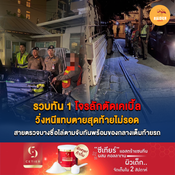 รวบทัน 1 โจรลักตัดเคเบิ้ล วิ่งหนีแทบตายสุดท้ายไม่รอด สายตรวจบางซื่อไล่ตามจับทันพร้อมของกลางเต็มท้ายรถ