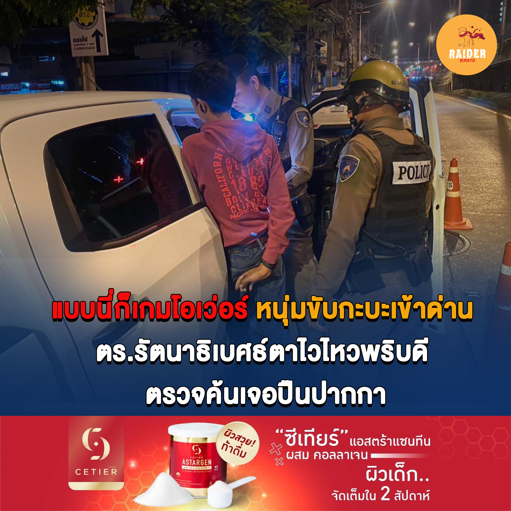 แบบนี่ก็เกมโอเว่อร์ หนุ่มขับกะบะเข้าด่าน ตร.รัตนาธิเบศธ์ตาไวไหวพริบดี ตรวจค้นเจอปืนปากกา
