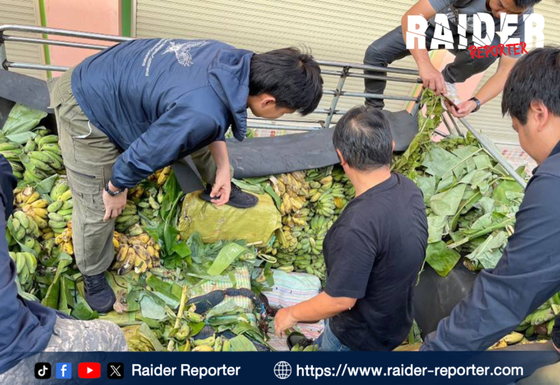 สืบเนื่องจากเมื่อวันที่ 26 พ.ย.66 บช.ปส. โดย กก.2 บก.ปส.3 และ บก.ขส.พร้อมด้วยเจ้าหน้าที่ นปส.ขกท.ศปก.ทบ.(ขกท.ศปก.นสศ.) ได้ร่วมกันสืบสวนติดตามพฤติกรรมเครือข่ายลำเลียงยาเสพติดจากภาคเหนือ พบว่าจะใช้รถกระบะลักษณะตีคอก ก 13XX (ป้ายแดง) กำแพงเพชร และ รถกระบะอีซูซุ ยX 81XX เชียงใหม่ ลำเลียงยาเสพติดจาก จว.เชียงใหม่ ลงไปยังพื้นที่ จว.พระนครศรีอยุธยา โดยอำพรางด้วยพืชผลทางการเกษตร ต่อมาได้พบความเคลื่อนไหวของเครือข่ายขับรถกระบะ ก 13XX (ป้ายแดง) กำแพงเพชร เข้าไปรับ ยาเสพติดบริเวณ ต.แม่นะ อ.เชียงดาว จว.เชียงใหม่ จากนั้นได้มุ่งหน้าสู่พื้นที่ภาคกลาง โดยมีรถยนต์อีซูซุ ยX 81XX เชียงใหม่ ขับนำทางและนำมาจอดทิ้งไว้ที่บริเวณหน้าปั๊มน้ำมัน ปตท.วังน้อย จว.พระนครศรีอยุธยา จากนั้นมี รถเก๋งฮอนด้า ญX 28XX กรุงเทพ ขับรถมาจอดที่หน้ารถกระบะ ก 13XX(ป้ายแดง) กำแพงเพชร แล้วมีคนลง จากรถเก๋งแล้วขึ้นไปขับรถกระบะลักษณะตีคอกฯออกไป โดยมีรถเก๋งขับนำทางไป ต่อมาพบรถกระบะ ก 13XX (ป้ายแดง) กำแพงเพชร ขับมาจอดภายในซอยหมู่บ้านฉัตรนคร แขวง/เขตประเวศ กรุงเทพฯ ตำรวจชุดจับกุมจึงแสดงตัวขอตรวจค้น จากการตรวจค้นรถกระบะลักษณะตีคอก พบมีการใช้กล้วยน้ำว้าจำนวนมาก มาวางปิดทับซุกซ่อนกระสอบบรรจุยาบ้า จำนวนประมาณ 10 ล้านเม็ด