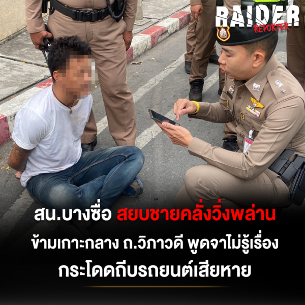 วันนี้ 23 ม.ค.67 เวลาประมาณ 14.20 น. พ.ต.ท.วรภัทร สุขไทย รอง ผกก.ป.สน.บางซื่อ ได้รับแจ้งทาง ว.13 จาก จนท.ฝ่ายอาคาร กระทรวงพลังงานว่ามีชายอาการคลุ้มคลั่งคล้ายเมายาบ้า วิ่งข้ามถนน กระโดดข้ามเกาะกลาง ถ.วิภาวดีฯ จากฝั่งเซ็นทรัลลาดพร้าว มายังฝั่งป้ายรถประจำทางหน้า ปตท.สง.ใหญ่ (วิภาวดี) โดยตะโกนโวยวายจับใจความไม่ได้ฯ