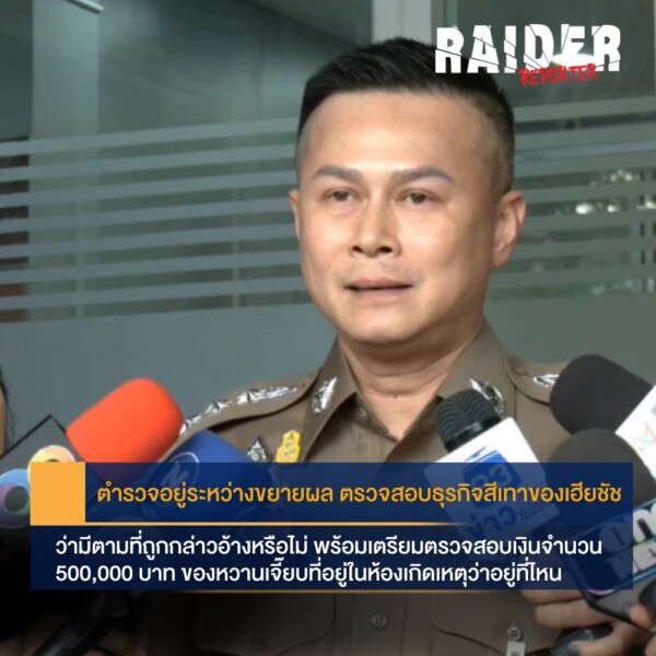 ตำรวจอยู่ระหว่างขยายผล ตรวจสอบธุรกิจสีเทาของเฮียชัช ว่ามีตามที่ถูกกล่าวอ้างหรือไม่ พร้อมเตรียมตรวจสอบเงินจำนวน 500,000 บาท ของหวานเจี๊ยบที่อยู่ในห้องเกิดเหตุว่าอยู่ที่ไหน