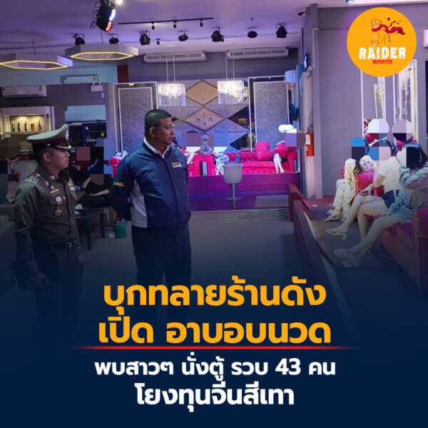 บุกทลายร้านดัง เปิด อาบอบนวด พบสาวๆ นั่งตู้ รวบ 43 คน โยงทุนจีนสีเทา