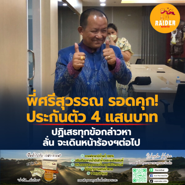 พี่ศรีสุวรรณ รอดคุก! ประกันตัว 4 แสน ปฏิเสธทุกข้อกล่าวหา ลั่น จะเดินหน้าร้องฯต่อไป