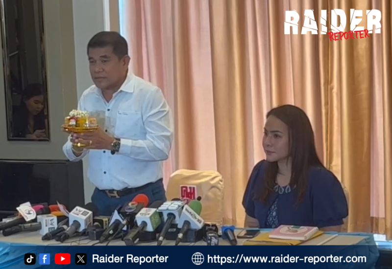 อดีตผู้สมัครสมาชิกสภาผู้แทนราษฎร (สส.) พรรครวมไทยสร้างชาติ แถลงชี้แจงกรณีที่ตกเป็นผู้ต้องหาฐานร่วมกันเป็นเจ้าหน้าที่รัฐและสนับสนุนเจ้าหน้าที่รัฐเรียกรับผลประโยชน์