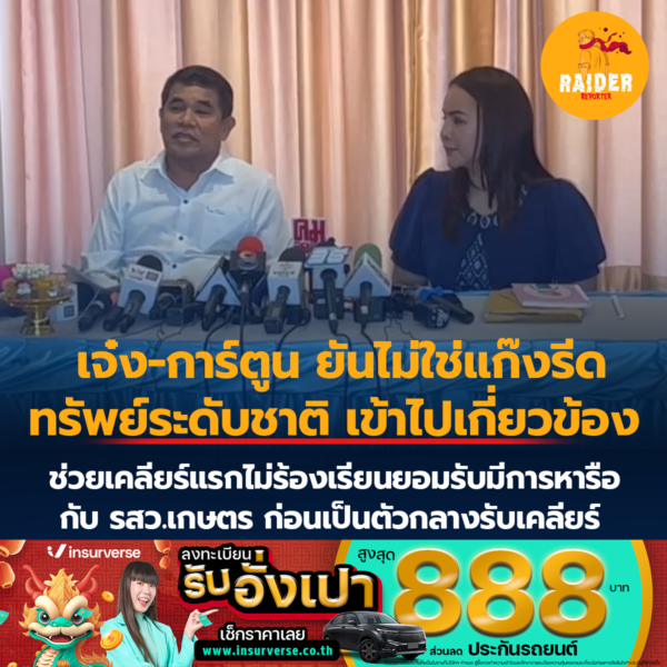เจ๋ง-การ์ตูน ยันไม่ใล่แก๊งรีดทรัพย์ระดับชาติ เข้าไปเกี่ยวข้อง ช่วยเคลียร์แรกไม่ร้องเรียน ยอมรับมีการหารือกับรสว.เกษตร ก่อนเป็นตัวกลางรับเคลียร์
