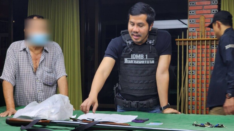 พฤติการณ์คือ จากสืบสวนทราบว่า เมื่อประมาณเดือนมีนาคม 2559 เจ้าหน้าที่ตำรวจเคยเข้าตรวจค้นบ้านนายสายัณห์ เจ้าของบ้าน ส่วนกำลังอีกชุดเข้าค้นอีกบ้านพร้อมจับกุม นายชนะโชติ หรือ ตั๊ก อายุ 34 ปี เจ้าของบ้าน ซึ่งเป็นลูกชายของนายสายัณห์ ทั้งคู่ซึ่งมีพฤติการณ์เป็นผู้มีอิทธิพลทำการทวงหนี้นอกระบบ โดยมีสมาชิกในกลุ่มหลายคน มักใช้ความรุนแรง ข่มขู่ ยึดรถและทรัพย์ของลูกหนี้มาเก็บไว้ โดยจากการตรวจค้นบ้านทั้ง 3 หลังยึดของกลางเป็น อาวุธปืนลูกซองยาว 1 กระบอก อาวุธปืนขนาด .38 จำนวน 1 กระบอก พร้อมเครื่องกระสุนจำนวนหนึ่ง นอกจากนี้ยังตรวจยึดรถกระบะยี่ห้อมาสด้า รุ่นบีที 50 สีบรอนซ์เงิน ที่มีผู้เสียหายแจ้งความกับ สภ.บางบัวทอง จ.นนทบุรี ว่าถูกยึดมาเพราะติดหนี้