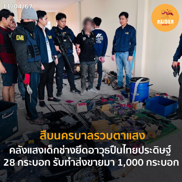 สืบนครบาลรวบตาแสง คลังแสงเด็กช่างยึดอาวุธปืนไทยประดิษฐ์ 28 กระบอก รับทำส่งขายมา 1,000 กระบอก